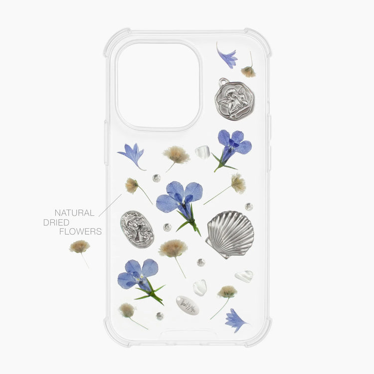 Each case features a blend of real dried flowers and dimensional decorative elements, creating a vivid, natural composition. This series speaks of lightness, tenderness, and inner peace.