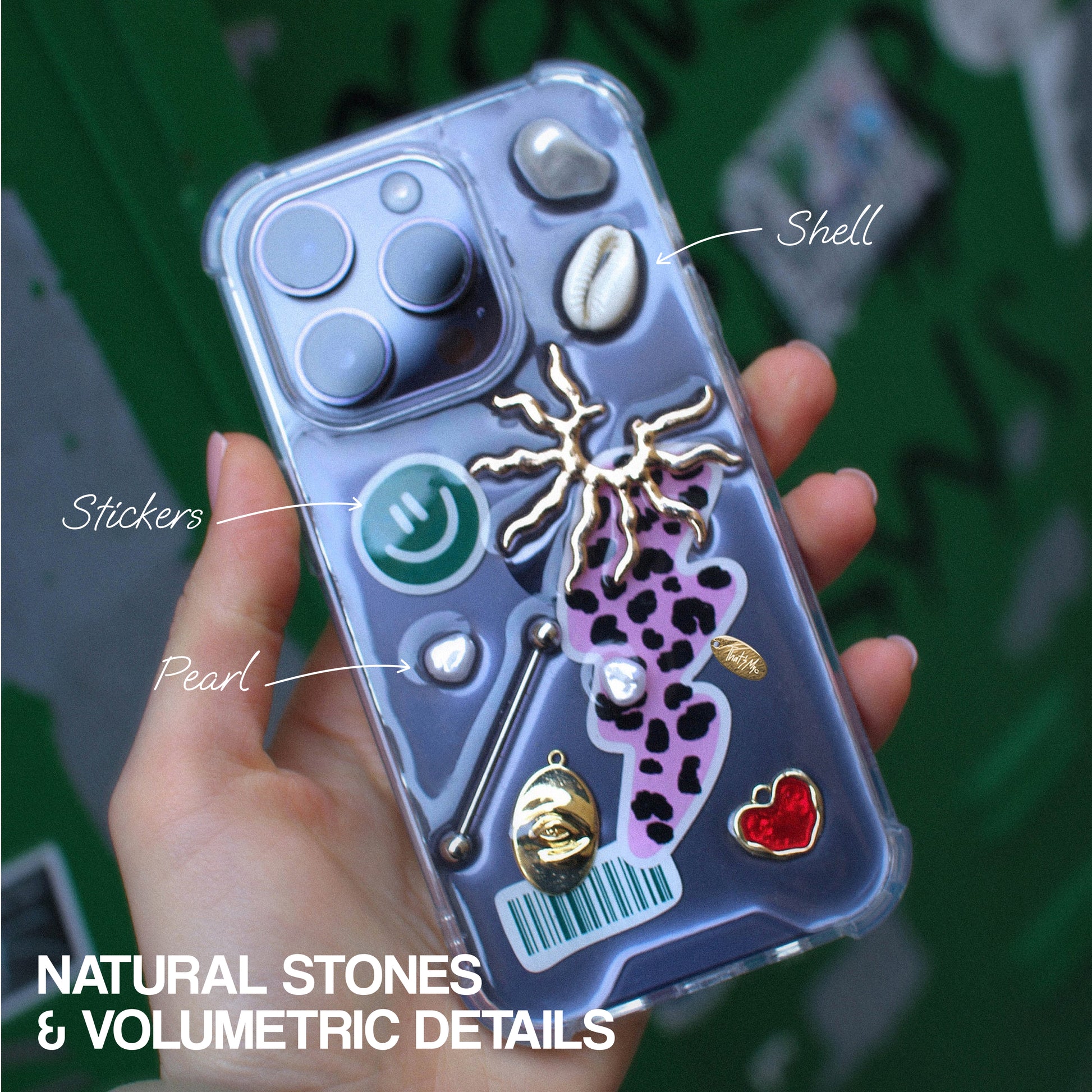 The natural stones and shells used in our products give each case its uniqueness and special charm, while the high-quality base ensures protection for the phone from all sides.