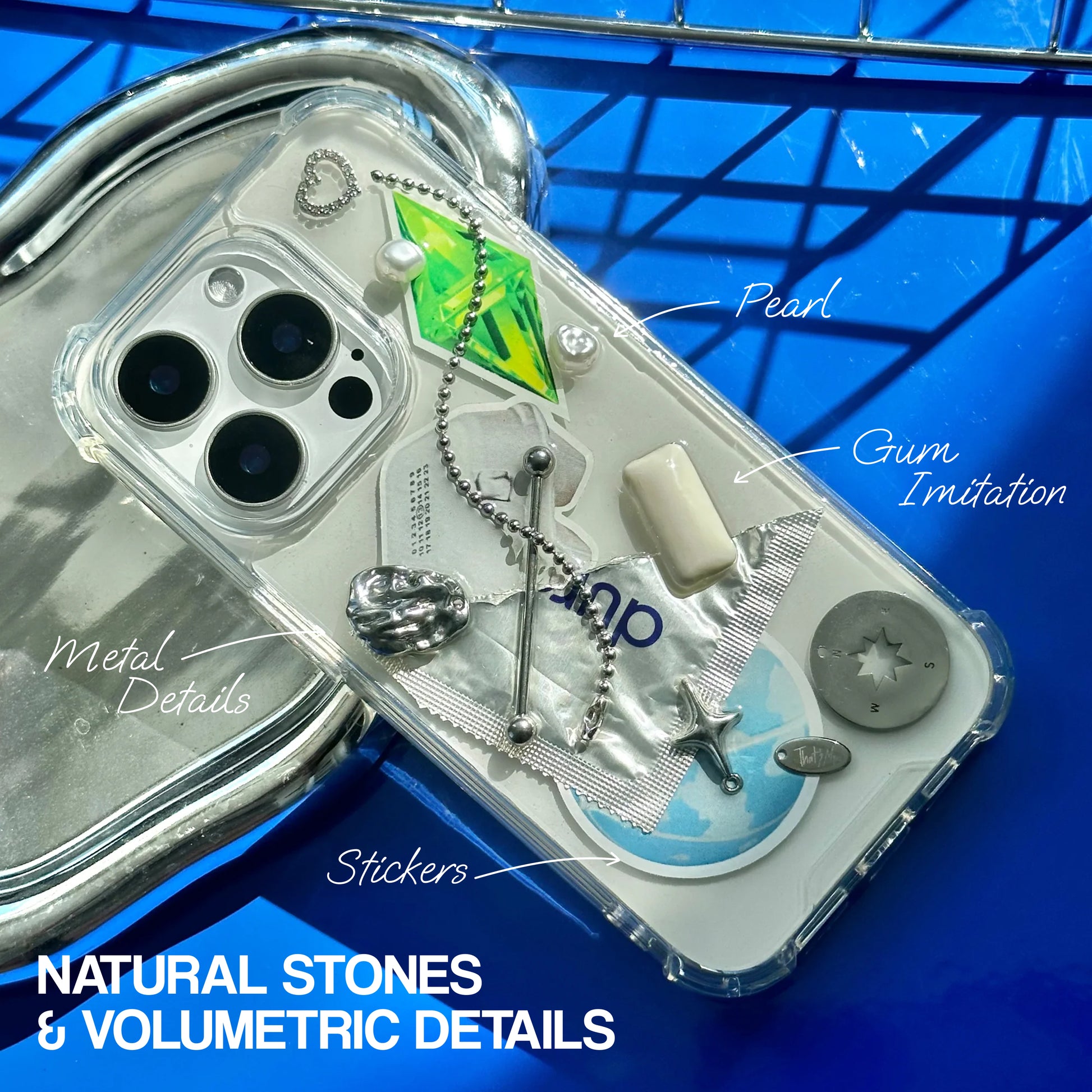 The natural stones and shells used in our products give each case its uniqueness and special charm, while the high-quality base ensures protection for the phone from all sides.
