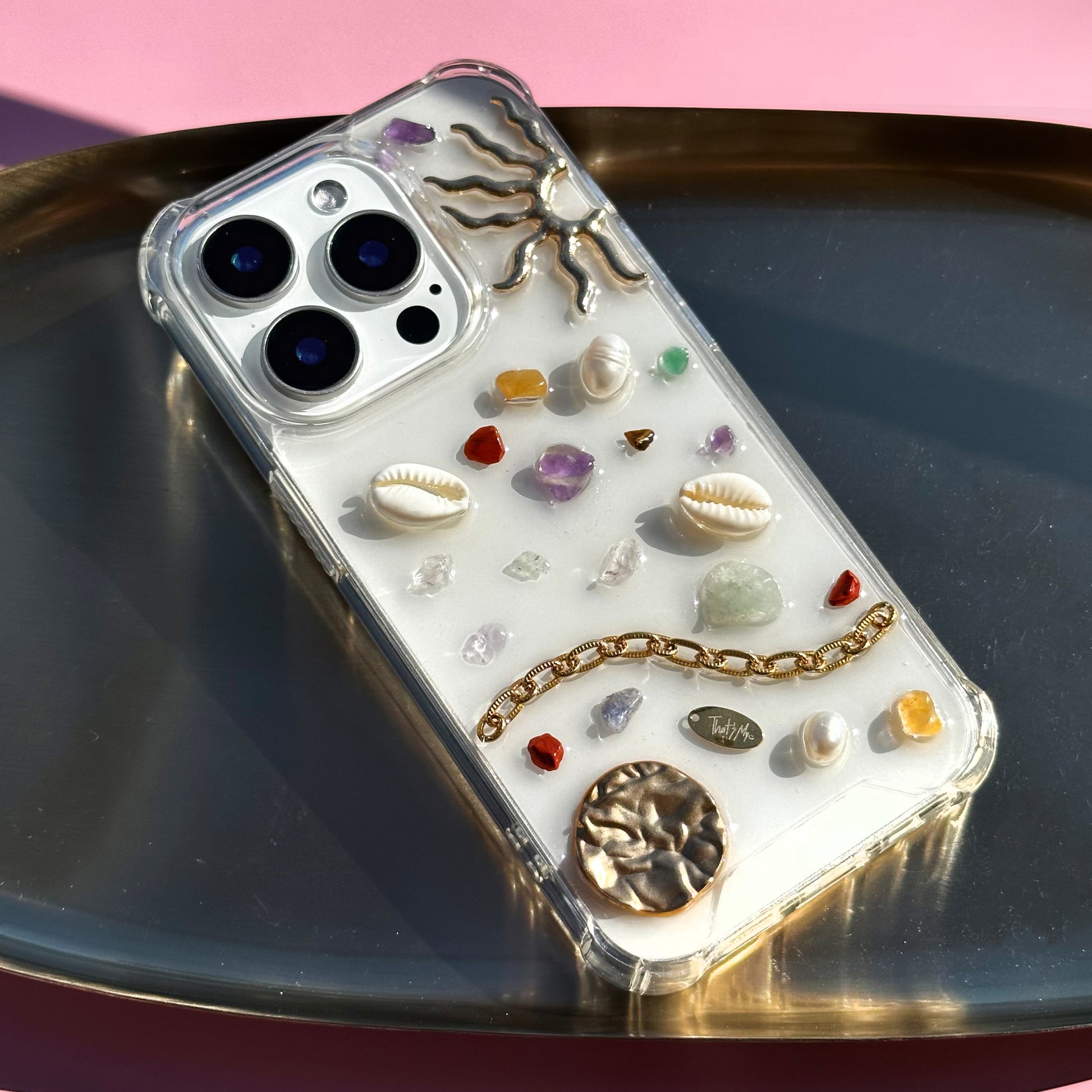 The natural stones and shells used in our products give each case its uniqueness and special charm, while the high-quality base ensures protection for the phone from all sides.