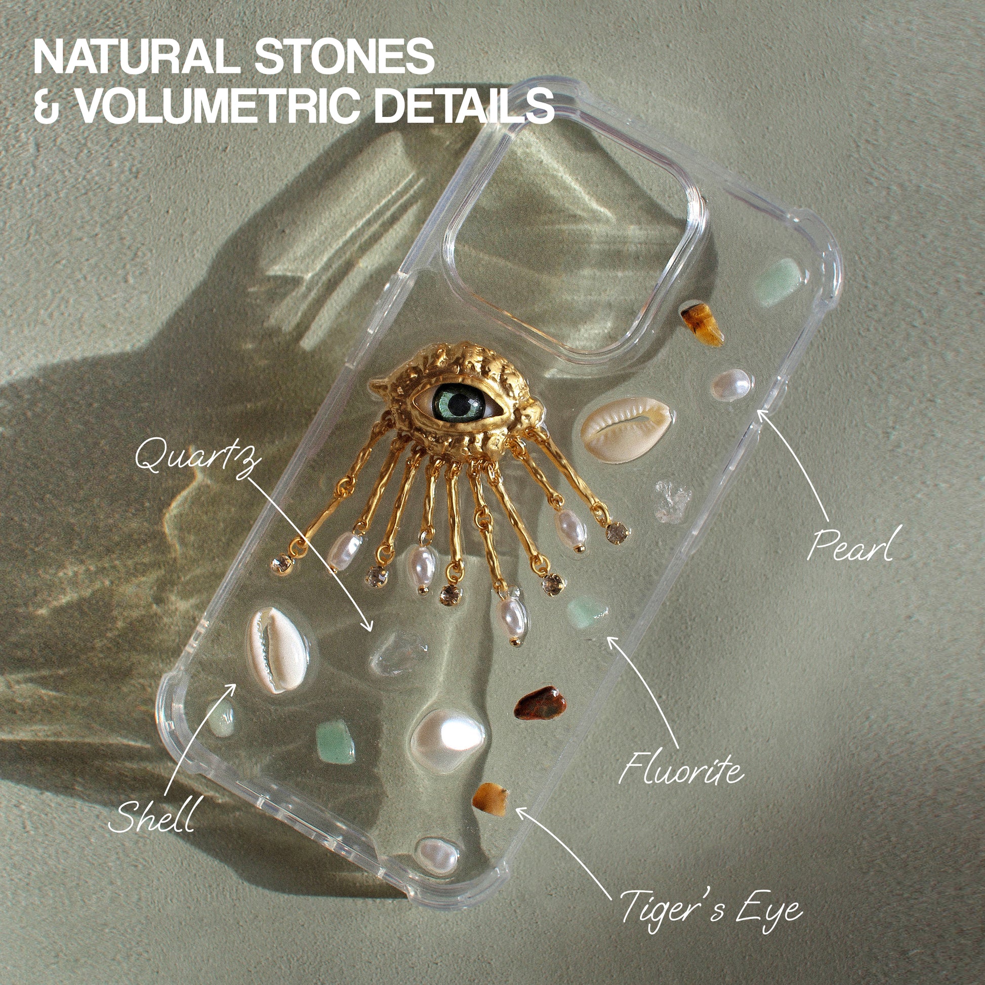The natural stones and shells used in our products give each case its uniqueness and special charm, while the high-quality base ensures protection for the phone from all sides.