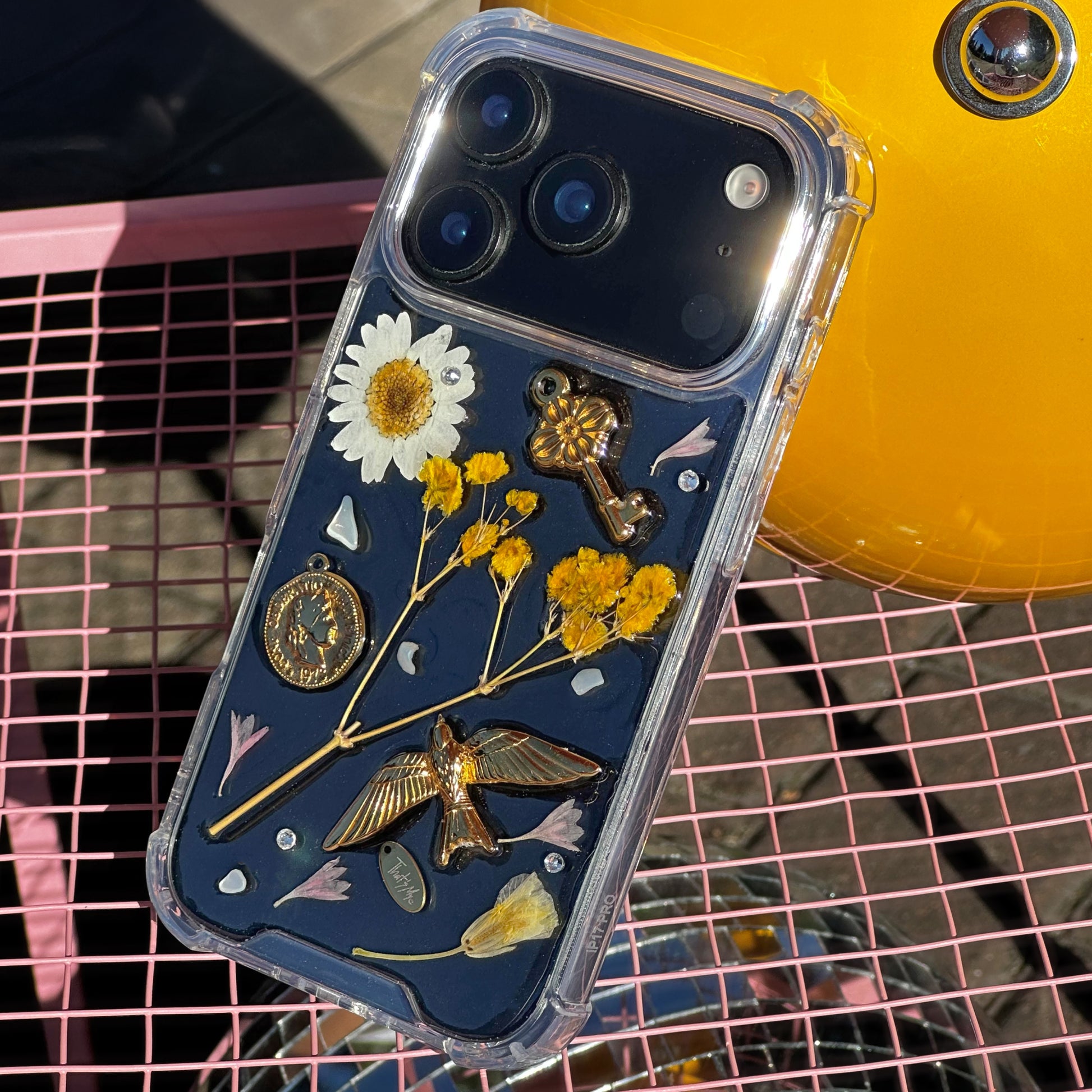 Each case features a blend of real dried flowers and dimensional decorative elements, creating a vivid, natural composition. This series speaks of lightness, tenderness, and inner peace.