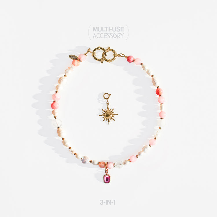 3-in-1 Handmade Accessory with Natural Stones Rosy Glow, combining three functions in one product.